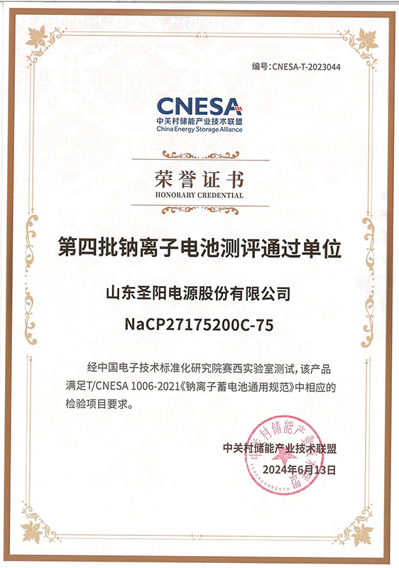 天津圣阳股份荣登“全国第四批钠离子电池测评通过单位”榜单